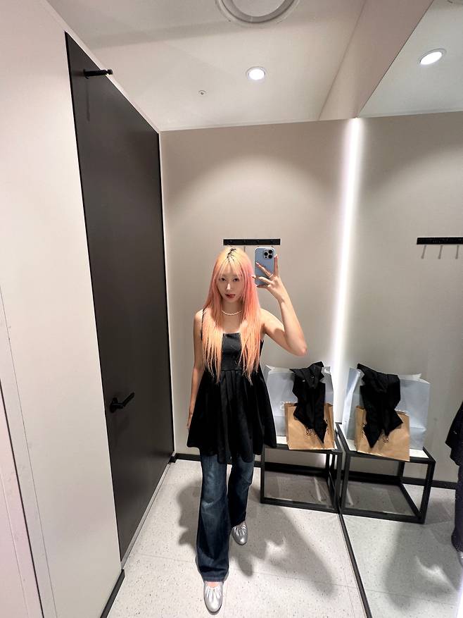 블랙과 청의 조합도 흰 청 만큼 예쁘다고 생각해서 입어봤어요 ㅎㅎ