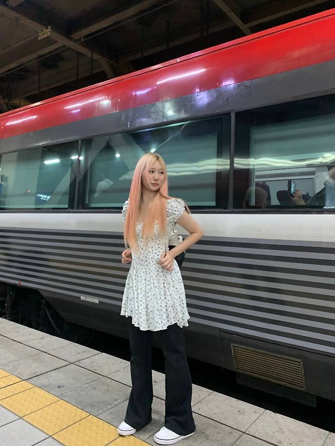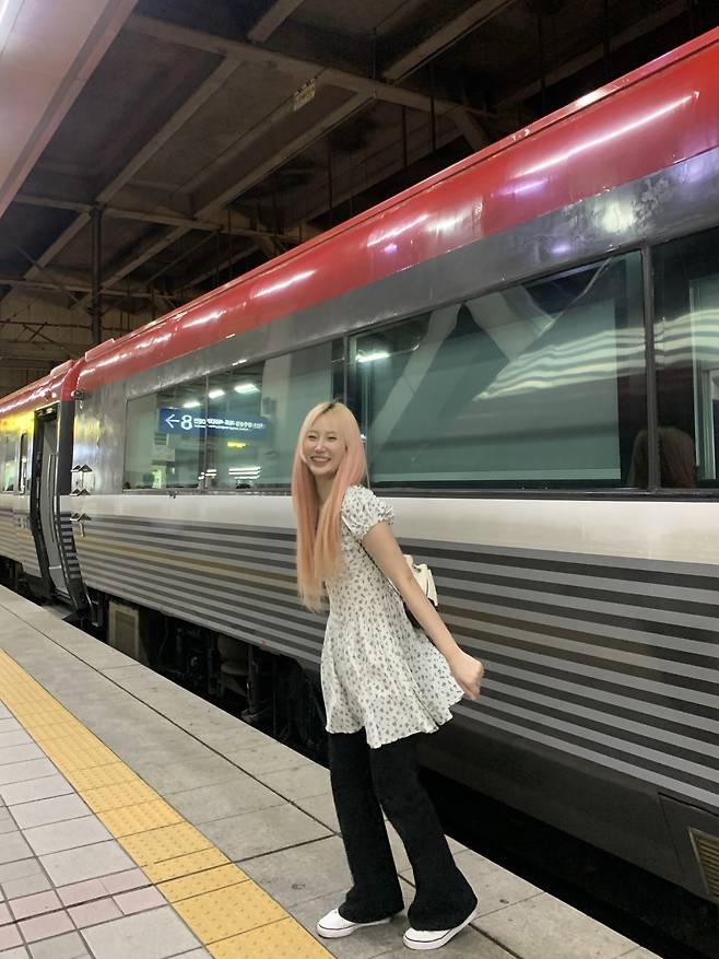 트레이닝과 원피스의 조합은 장거리 이동도 편하게 갈 수 있었어요 ㅎㅎ