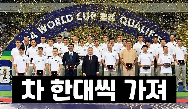 이날 경기장에서는 고급 차량 수십대가 준비됐고, 이는 우즈베키스탄 대표팀 선수 모두에게 돌아갔다.