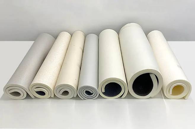 보통 두께를 늘리기 위해 발포 PE폼을 몇겹 더 접착하는 방식을 사용합니다.