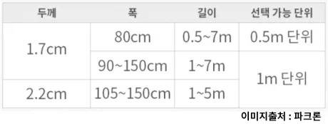 일부 브랜드는 최장 길이가 10m에 달하기도 하니 엄청 넓은 공간에 깔아야 한다면 해당 브랜드를 우선적으로 고려해 보셔야 합니다.