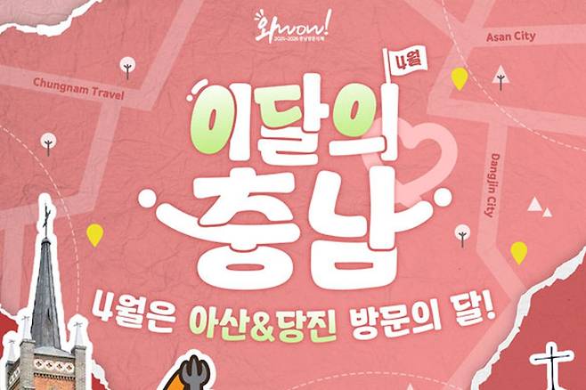 충청남도는 '2025-2026 충남 방문의 해'를 맞아 '이달의 충남' 4월 추천 관광지로 아산과 당진을 선정하였다고 발표하였다.