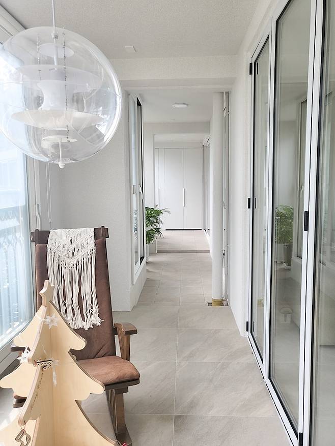 베란다에는 확장 대신 폴딩도어를 설치해 개방감과 안락함을 동시에 주었어요.