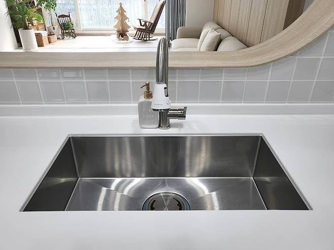 수전은 많이들 보시는 거위목 수전이었는데 물이 배에 너무 튀고 (제 배 탓일까요?) 필터 없이 설거지 하기가 찝찝하여 바꿔주었어요. 태풍 때 단수된 적이 있었는데 누런 물이 나오는 걸 보고 놀래서 필터 수전이 필요한 걸 몸소 체험했거든요.