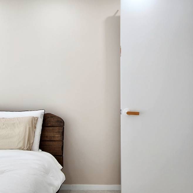 안방 문 고리 역시 화이트에 우드 한 방울 우드 손잡이로 포인트를 주었답니다.