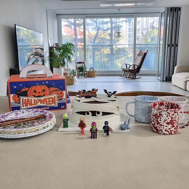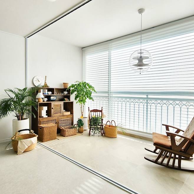 베란다에는 식물을 키우고 작은 홈 카페를 만들어 두었어요.