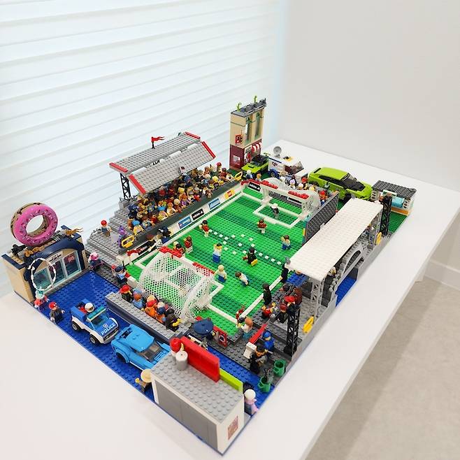 이정도면 레고 부자인가요? 다른 부자이고 싶었는데. . ㅠ 레고 상은 신랑이 나눔 받아 리폼 해놓은 건데 어쩜 길이도 꼭 맞아 잘 쓰고 있어요. 왜 가져왔냐고 잔소리를 해댔었는데...ㅋㅋ 첫째가 창작해서 축구장을 만들어 놓은 걸 보니 또 뿌듯하네요.