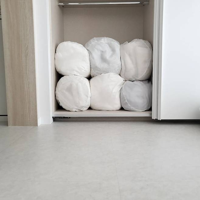 요즘 날씨가 추워져서 다들 톡톡한 이불 꺼내셨죠? 침구 수납은 어떻게 하셨나요? 저는 이불을 뺄 때 우르르 와르르 경험자라 요렇게 말아 넣어 보관 해주는데 하나씩 쏙쏙 뺄 수 있어 너무 편하고 좋답니다. 이불이 튀어나와 장문이 안 닫히시는 분들 저처럼 성질 급해서 이불 확 빼다가 와르르 쏟아지시는 분들 추천템이에용.