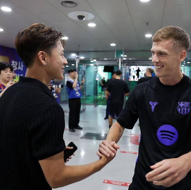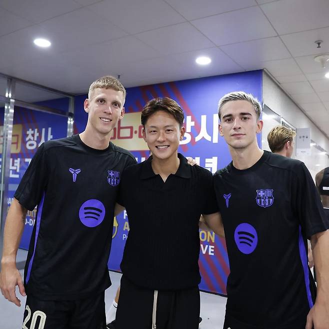 이날 경기를 앞두고, 바르셀로나 유스팀에서 활약했던 이승우가 경기장에 등장해 팬들의 시선을 사로잡았습니다. 그는 2011년부터 2017년까지 바르셀로나 유스팀에서 뛰었고, 당시 한솥밥을 먹었던 다니 올모와 경기 시작 전 만나 반갑게 인사를 나누는 모습이 포착되었습니다. 이승우는 현재 전북 현대 소속으로, 이날 경기는 관중석에서 지켜봤습니다.