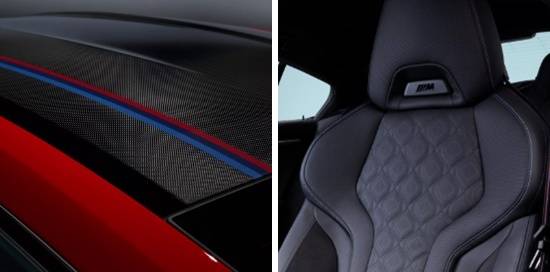 외관은 여기에 투톤 오빗 그레이 20인치 듀얼 스포크 알로이 휠과 은은한 M 삼색 스트라이프가 들어간 카본 파이버 루프가 더해진다.
