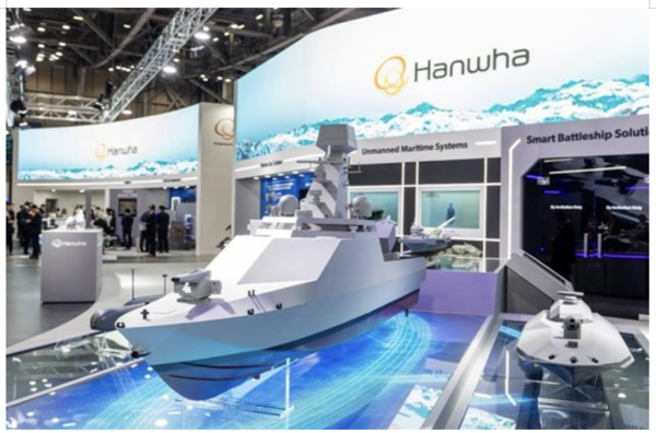 한화시스템은 현대전에서 무인화의 필요성이 적극 요구되는 상황을 고려, ‘전투용 무인수상정’을 최초로 공개했다. 전방 해역 경비 구역에서 인명 피해 없이 근접 전투를 수행할 수 있다. 육상이나 해상에서 원격으로 제어가 가능해 주요 항만이나 전진기지의 경계, 탐색, 탑재 무장을 활용한 전투 수행까지 가능하다.