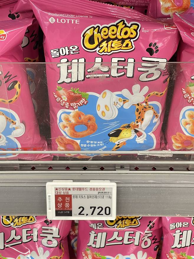바삭한 맛의 치토스 체스터쿵은 우유와 함께 먹으면 딸기우유와 먹는 것 같은 은은한 딸기맛이 매력적이라 구매를 추천해요!
