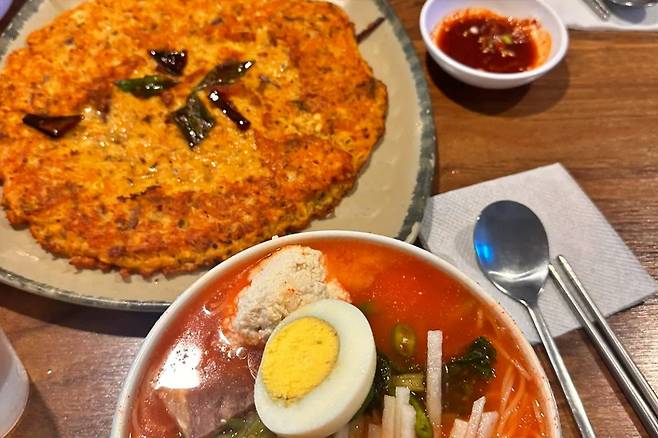 김치말이국수 외에도 곰탕, 비빔국수, 온면, 만두국 등 다양한 국수류를 갖추고 있어 계절과 취향에 따라 선택 가능하다. 곁들임 메뉴로는 녹두전과 손만두, 김치말이밥이 인기다. 바삭한 전과 국수의 조합은 포천 현지인뿐 아니라 관광객에게도 ‘든든한 한 끼’로 통한다.