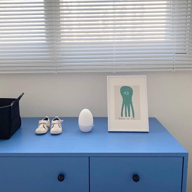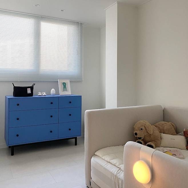 아기방도 전체적으로 화이트톤을 유지하지만 파랑 물감 한 방울🦕 비아인키노 베이체스트는 벤자민무어 페인트를 사용해서 아기방에도 부담 없이 들일 수 있었어요!