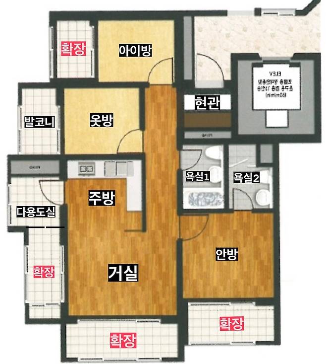 2008년에 지어진 25평 아파트예요~ 보통 보시는 판상형이 아닌 타워형 구조로 주방이 거실과 맞닿아 있고, 2bay 구조예요! 전 3bay 판상형을 주로 선호하였었는데, 살아보니 살림하기 은근 편한 구조 같아요! 거실 양쪽 베란다가 확장된 구조라 평면도 생각하면서 보면 더 이해하기 쉬울 거예요🙋♀️