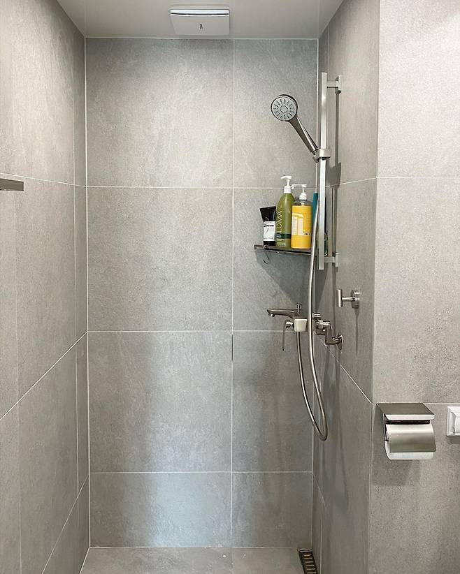 안방 욕실은 사실 아직 하자 처리 중이에요~ 흐린 눈하고 봐야 예쁜 안타까운 공간이죠^^ 인테리어를 해보니 타일 작업이 기간도 꽤 많이 소요되고 작업자 능력도 중요한 작업이더라구요. 꼭 검증된 전문가와 작업하시고, 본드나 메지, 평탄 클립 등 부자재도 꼼꼼히 확인하시면 좋아요.