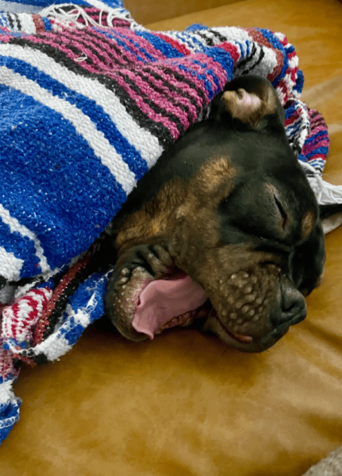 블레어의 사연을 접한 구조 센터의 임시 보호자 케이티 크레이머(Katie Kramer)는 사진을 보는 순간 그녀를 직접 돌보고 싶다는 생각이 들었습니다. 그렇게 블레어는 크레이머의 집에서 사랑을 듬뿍 받으며 지내게 되었습니다.