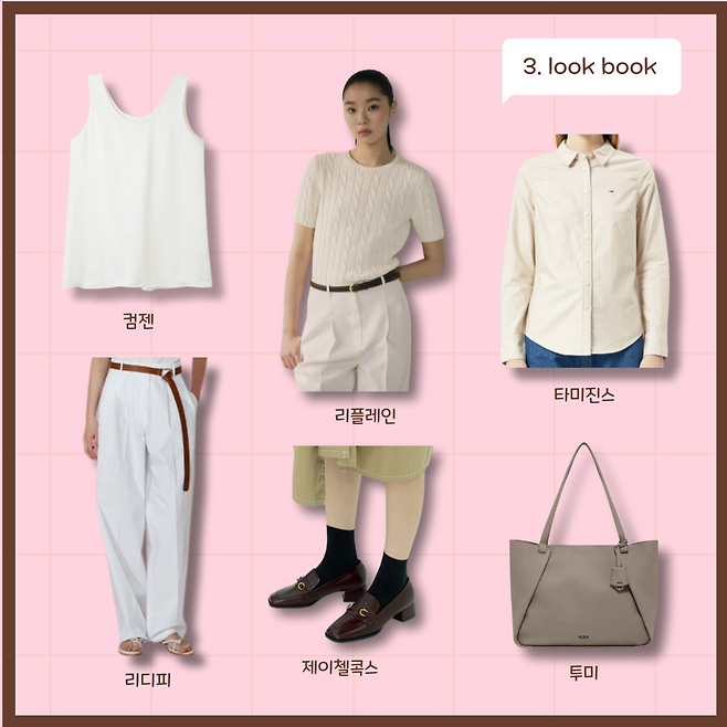 올 화이트로 룩을 입고 악세사리로 포인트를 주면