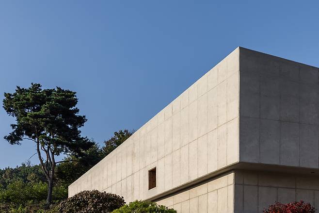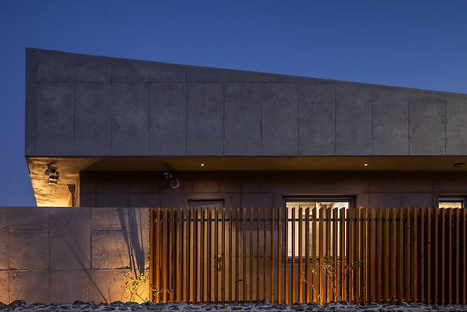 서측의 높은 인접 대지에서는 지붕이 낮게 깔려 있고, 동측의 낮은 인접 대지에서는 건물의 형태가 보이도록 하였다. 그리고 마당을 좀 더 프라이빗하게 만들면서, 남동쪽의 단독주택들로부터 시선을 차단하기 위해 수평의 떠 있는 띠를 만들었다. 이를 통해 마당은 좀 더 아늑하면서, 사람의 시선에서는 땅의 연속성을 유지하여 답답하지 않은 형태를 가지도록 하였다.