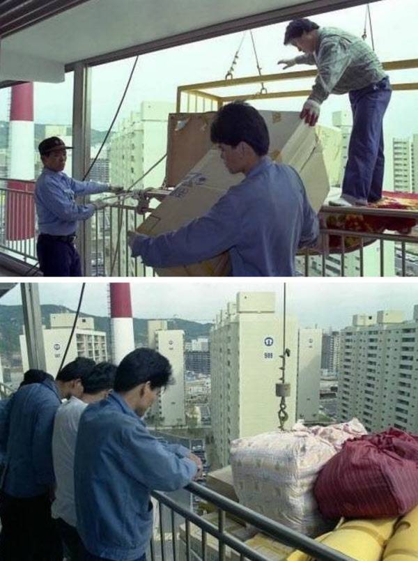 1980~1990년대 들어 아파트 높이가 10층 이상으로 높아지자 이삿집 업계에선 새로운 장비를 도입하기 시작했다. 바로 곤돌라다. 네모난 승강장치에 발판을 부착하고, 여기에 줄을 달아 건물 옥상으로 연결한 뒤 거실 창이 크게 난 베란다 쪽으로 짐을 오르내리는 형태다. 다만 곤돌라는 이삿짐을 많이 싣거나 무거운 물품을 운반하는 데는 적합하지 않은 장비였다.