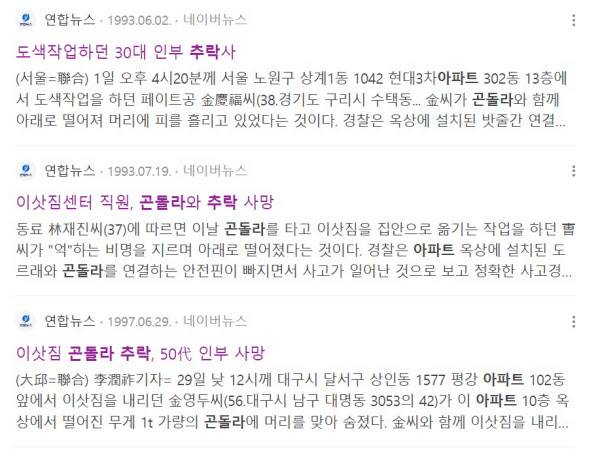 실제로 이삿날 곤돌라로 짐을 나르던 인부들이 사망하는 끔찍한 사고도 적지 않게 발생했다. 1991년에는 인천시 남구 학익동 ‘신동아아파트’에서 15층에 설치한 곤돌라를 제대로 고정하지 않아 추락하면서 집주인과 이삿짐 센터 인부 3명이 사망하는 일이 벌어졌다. 1993년에도 서울 성동구 자양동 ‘한양아파트’에서 곤돌라 안전핀이 빠지는 바람에 이삿짐을 나르던 직원 1명이 바닥으로 떨어져 사망에 이르렀다.
