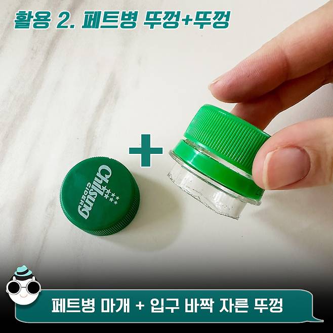 페트병 뚜껑 + 페트병 뚜껑의 조합은 어떨까요 ㅎ.ㅎ