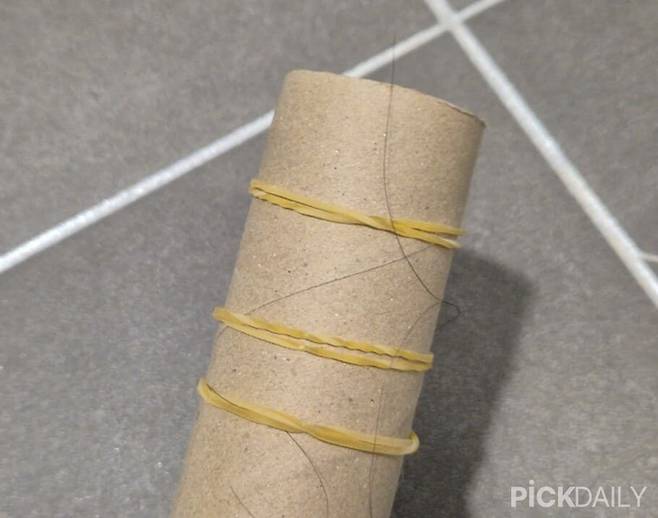 바로 이 점을 이용해 머리카락 청소를 해주면 되는데요. 재활용 통에 있던 휴지심을 꺼내 고무줄을 여러번 감아주고 바닥에 몇 번 굴려주면, 손쉽게 머리카락을 청소 할 수 있습니다. 뿐만아니라 각종 먼지도 손쉽게 달라붙어 제거되니, 카페트 사이에 낀 먼지를 청소하기도 좋습니다.