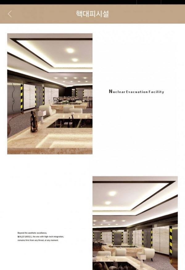 이 단지에는 지하 벙커 역할을 하는 ‘지하 방공호’(防空壕)가 있다. 방공호가 있는 3차(2002년 2월 입주)는 최고 11층, 1개동 19가구, 5차(2003년 1월 입주)는 최고 4층, 3개동 18가구 규모다. 3차 1개동과 5차 3개동 지하에 방공호를 설치했다.
