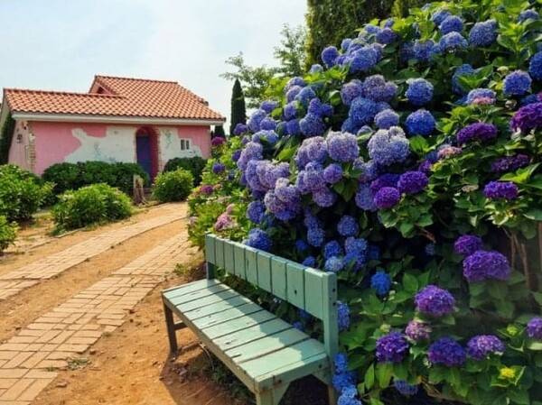 라벤더가든, 로즈가든, 어린왕자정원 등 각각의 테마정원은 산책로를 따라 이어져 있어 걷는 내내 색다른 풍경을 만날 수 있습니다. 특히 6월 중순부터는 수국 페스티벌이 열려 화려한 꽃길과 포토존이 조성되고, 라벤더도 절정을 이루어 방문객들의 감탄을 자아내고 있습니다.