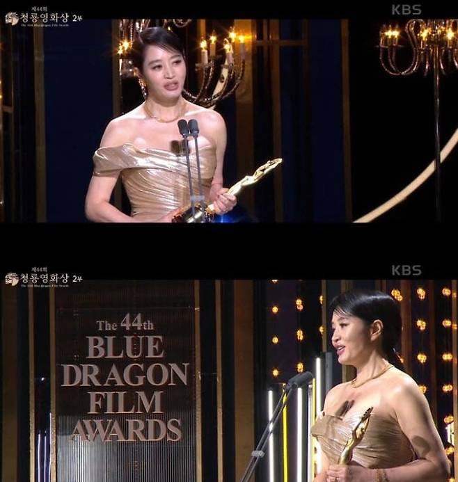 김혜수는 제44회 청룡영화제에서 청룡영화상을 받아 마지막으로 진행자 자리에서 소감을 밝히기도 했는데 '청룡영화상' 진행자 김혜수와의 이별에 동료 배우들은 김혜수를 향해 기립박수를 보냈습니다.