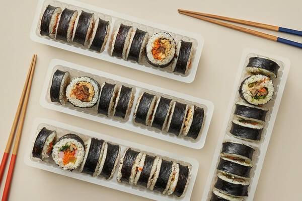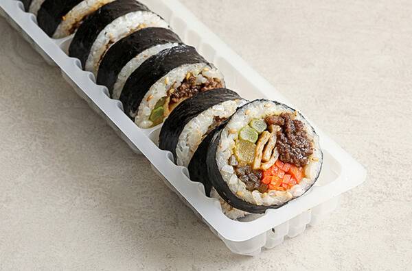 롯데푸드에서 운영하는 가정 간편식 브랜드 쉐푸드는 전문 셰프의 노하우를 담은 냉동김밥 제품을 공급하고 있다. 얇게 깐 흰쌀밥 위로 각종 재료를 담은 제품들이다. 돼지불고기의 달콤 짭조름한 풍미를 담은 ‘불고기 김밥’, 새콤한 김치와 고소한 참치가 조화를 이루는 ‘묵은지 참치 김밥’, 고소한 감칠맛이 매력적인 ‘갈릭베이컨마요 김밥’ 등을 고를 수 있다. 냉동김밥 한 줄의 가격은 4천 원 내외로 설정됐다.