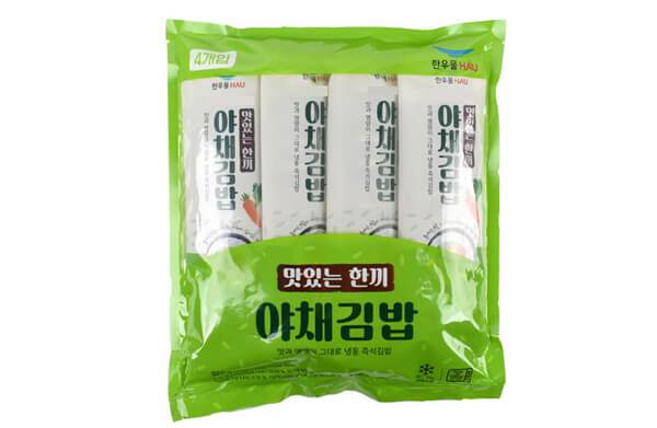 볶음밥의 명가 한우물은 자사의 브랜드를 붙인 야채김밥 제품을 판매하고 있다. 국내산 쌀과 햄, 맛살, 어묵, 당근, 단무지, 시금치, 우엉조림을 넣어 부족함 없이 알차게 만든 김밥이다. 냉동식품으로 유통기한이 넉넉해 쟁여두고 먹기 좋으며, 전자레인지에 넣고 3분만 조리하면 바로 먹을 수 있다. 김밥 전용 트레이를 사용해, 전자레인지 조리 시의 열 효율을 높이고 김밥이 흐트러지는 걸 방지했다. 230g 김밥 4줄 패키지의 대형마트 기준 판매가는 16,600원이다.