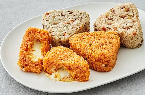 풀무원식품은 간편함은 물론 맛까지 갖춘 ‘구운 주먹밥’을 냉동식품으로 제공하고 있다. 가마솥으로 지은 고슬고슬한 밥에 재료를 알차게 채워 만들었다. 삼각형 모양으로 빚은 주먹밥은 열풍에 한 번, 직화로 한 번, 총 두 번을 구워서 겉은 바삭하고 속은 촉촉한 식감을 가진다. FSSC 22000, HACCP 인증 시설에서 위생적으로 제조한 제품이다. 김치지즈, 탱글소시지, 양념치킨의 3가지 맛을 고를 수 있으며, 가격은 8,980원이다.