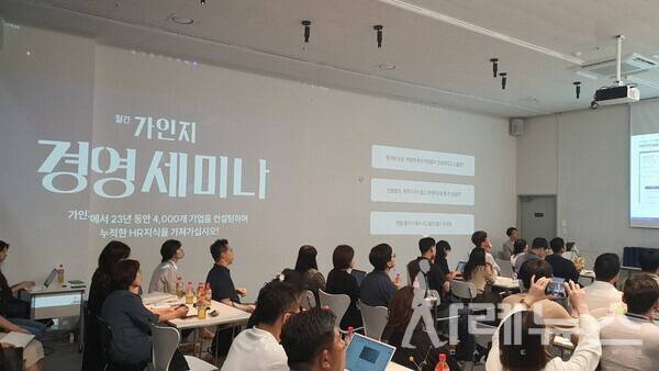 가인지경영 세미나는 23년 동안 4,000개 기업을 컨설팅한 가인지의 실무 HR 인사이트를 나누는 자리다. 2024년 7월 26일(금) '직원들이 몰입하는 기업의 숨은 평가와 피드백 문화'라는 주제로 제 1회가 개최됐다.