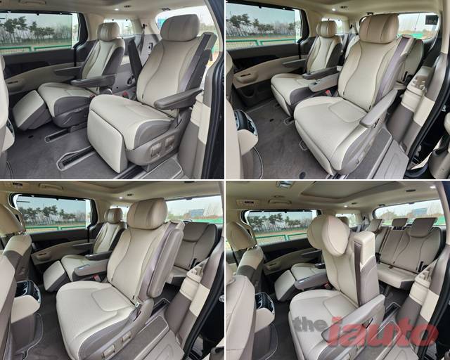 더 뉴 카니발에 버튼 구성을 최적화한 인포테인먼트/공조 전환 조작계를 적용하고 앰비언트 라이트를 크래쉬패드까지 확대 적용해 간결하면서도 고급스러운 디자인을 연출했으며, 대용량 컵홀더를 적용해 공간의 효율성까지 향상시켰다. 여기에 전자식 변속다이얼은 물론 스마트폰 무선 충전 시스템이 구성됐고, UV-C 살균 암레스트 수납함이 구성되면서 안정감을 주었다. 시승을 진행한 모델은 7인승으로 실내공간 활용성과 함께 퍼스트 클래스와 같이 조절을 이어갈 수 있게 한다.