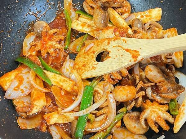 낙지볶음을 건강하게 먹으려면 조리법이 매우 중요합니다 기름은 최소화하고 올리브오일이나 들기름 한 작은술로만 볶아 기름 섭취를 줄이세요.