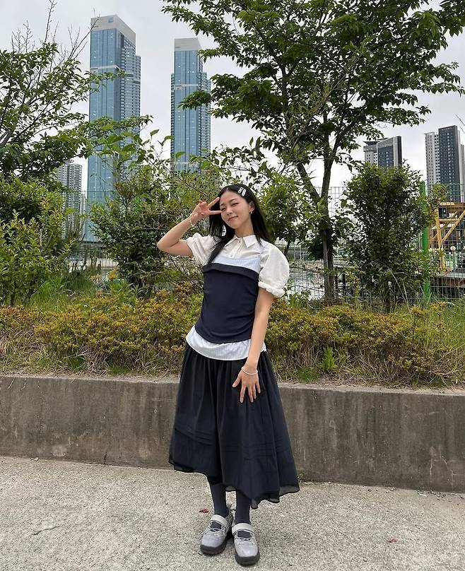 자연광이 부드럽게 감도는 배경 속, 흰은 손바닥을 볼에 댄 채 셀카를 찍는 귀여운 포즈로 특유의 순수한 매력을 배가시켰다. 셔츠 소매는 자연스럽게 접혀 팔 라인을 여리하게 드러냈고, 뷔스티에 원피스의 스트라이프 패턴은 전체적인 룩에 경쾌한 리듬을 더했다. 팬들은 “진짜 소녀 같다”, “요정이 거울 속에 살고 있는 줄” 등의 반응을 보이며 감탄을 아끼지 않았다.