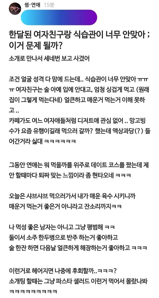 여친과 식습관이 너무 안 맞아 고민인 남친