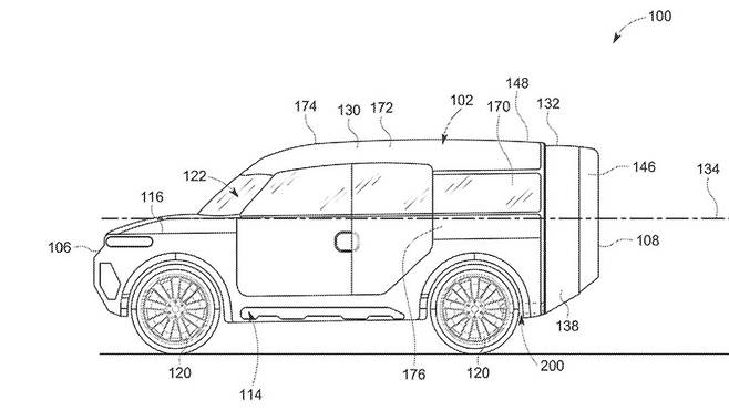 도면에는 차량 뒤쪽에 별도의 공간을 만들어 루프 장착형 텐트로 변신이 가능한 확장형 크로스오버가 그려져 있다. 이는 가족 캠핑 여행에 완벽해 보이지만, 가장 흥미로운 부분은 아니다.