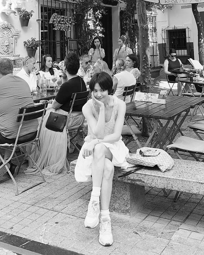 단발머리와 블랙 선글라스만으로도 완성되었다. 한 손엔 부드러운 미소, 다른 손엔 여유. 그 모든 순간이 마치 파리지앵 영화 속 한 장면처럼 느껴진다.