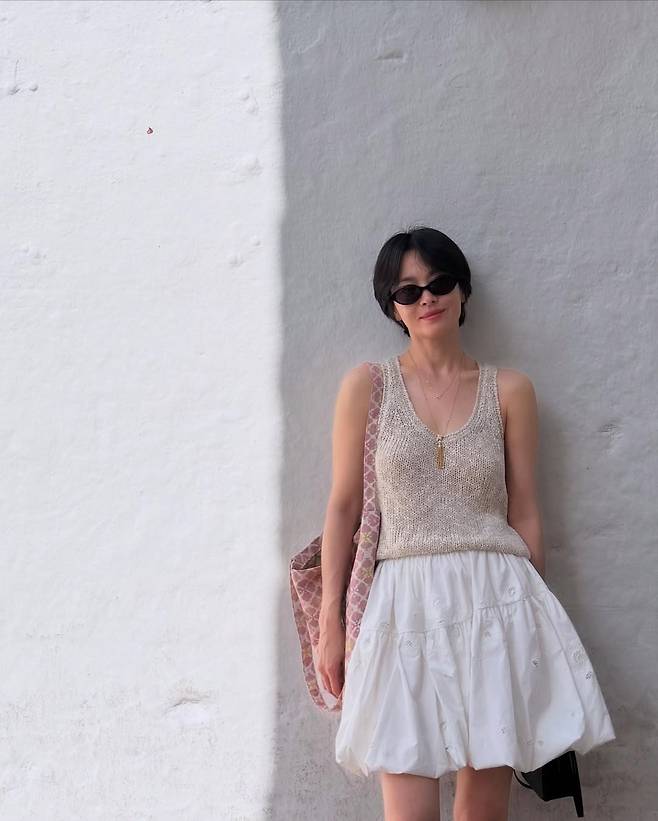 공개된 사진 속 송혜교는 민소매 니트 톱에 하얀 스커트를 매치한 내추럴한 스타일링으로 등장했다. 화려한 액세서리나 과한 스타일링 없이도 눈을 사로잡는 그녀의 존재감
