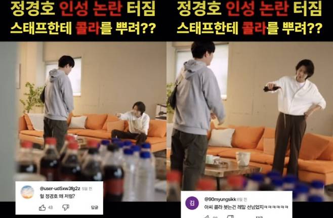 2024년 배우 정경호가 자신의 '인성 논란'을 직접 공개했습니다. 정경호는 10월 17일 "미쳤네"라는 글과 함께 한 편의 영상을 게재했습니다. 공개된 영상 속에는 정경호와 스태프의 모습을 몰래 찍는 듯한 모습에 '정경호 인성 논란 터짐 스태프한테 콜라를 뿌려?'라는 자막이 삽입됐습니다.