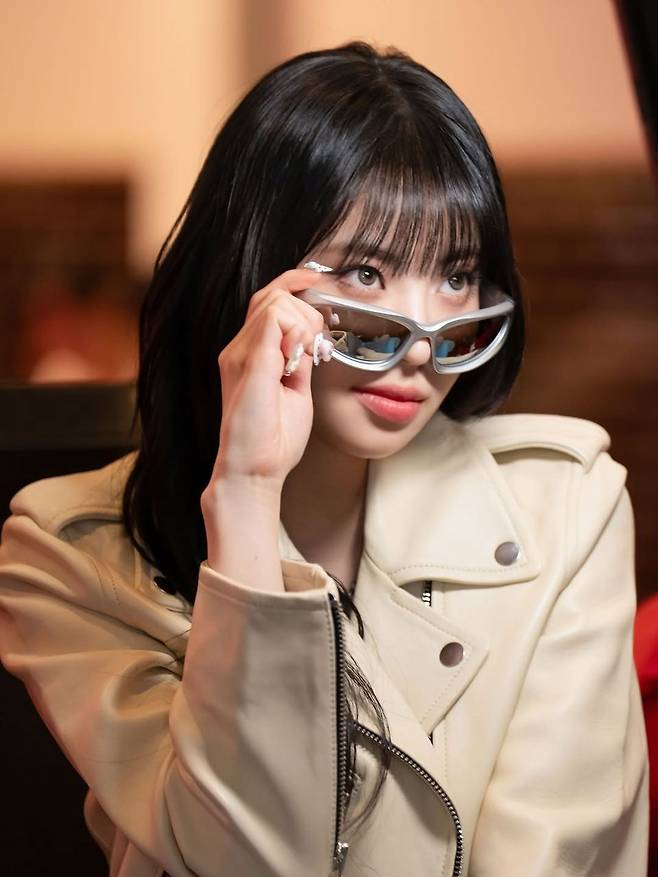 아이코닉한 실버 프레임 선글라스는 룩의 완성도를 높이는 동시에, 시선을 사로잡는 포인트 아이템으로 기능했다. 선글라스를 살짝 들어 올리며 카메라를 응시하는 코코의 포즈는 쿨하면서도 자신감 넘치는 분위기를 자아냈다. 헤어는 무광 블랙 톤의 스트레이트 스타일로 연출해 전체적인 스타일과 조화를 이루며, 앞머리로 자연스러운 여리여리함도 더했다.