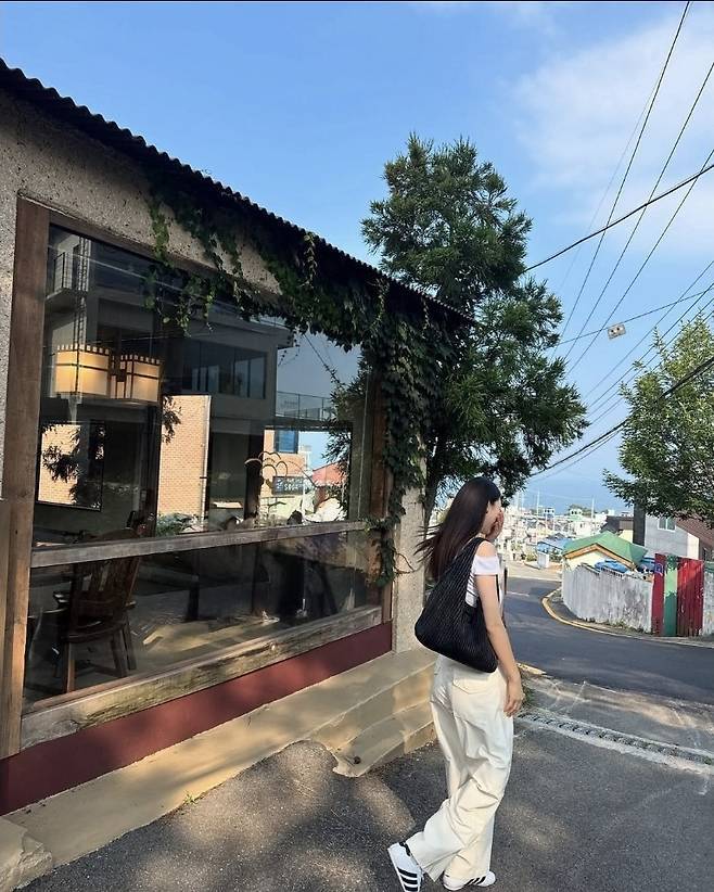 포인트 액세서리 없이도 전체적인 실루엣과 비율만으로 감각적인 분위기를 완성했으며, 화사한 미소와 함께 햇살을 받는 모습은 그 자체로 화보였습니다.