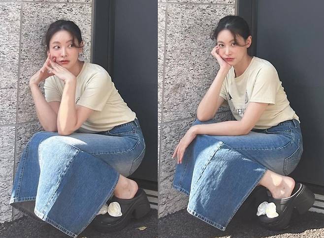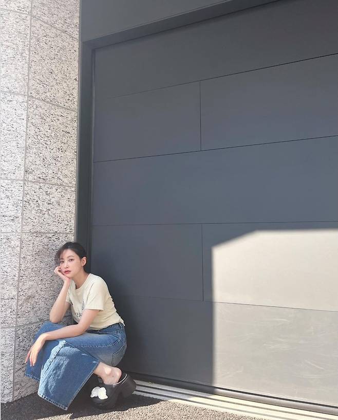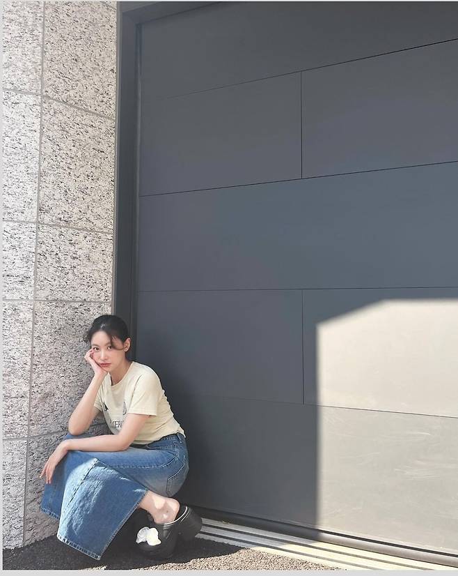 또, 오연서는 데님 롱스커트를 착용해 청순하고 페미닌한 분위기를 강조했습니다.