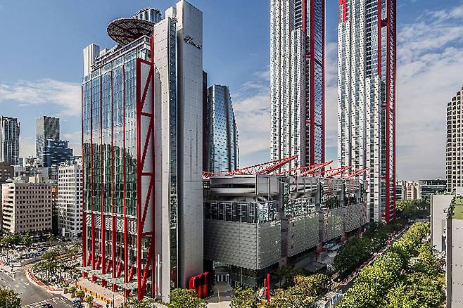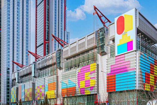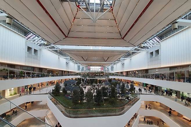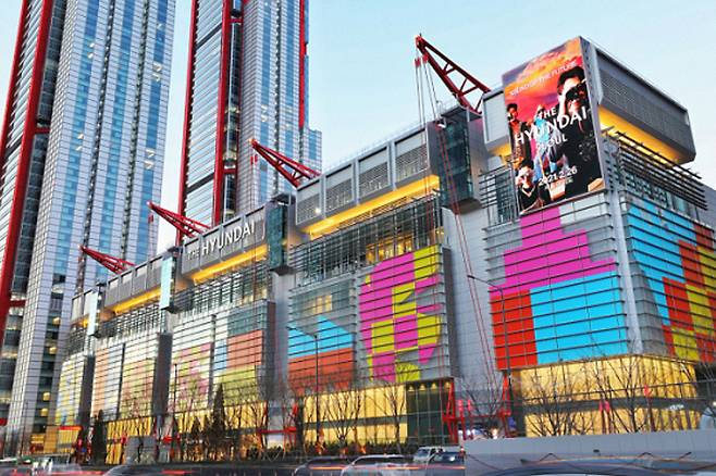 이는 세계에서 가장 유명한 건축가 중 한 명인 리처드 로저스의 설계로 그이 유작이자 한국의 전통 건축 양식의 자적색 기둥과 단청을 새로운 시각으로 해석했다는 평가를 받고 있다. 이 덕분에 내부 기둥을 설치하지 않아 매장 공간을 넓게 활용할 수 있으며 탁 트인 개방감을 살릴 수 있는 것으로 알려졌다.