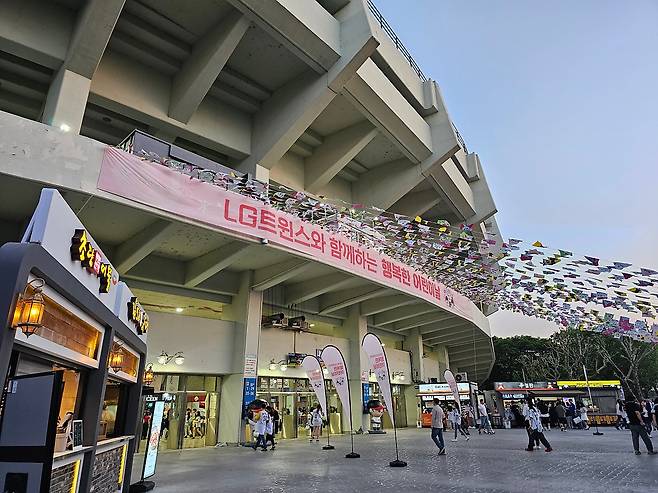 입점 매장과 메뉴를 늘어놓으면 크게 모자람이 없어 보이지만, 맛과 가격대를 고려하면 구장 내 식음시설 평가가 좋지만은 않은 편이다. 이에 경기 전 여유시간이 있는 팬들은 잠실새내역에서 음식을 미리 사 오는 경우가 많다. 대표적으로 새마을 전통시장의 ‘깻잎닭강정’과 만둣집 ‘파오파오’가 유명하고, 종합운동장 사거리의 ‘잭슨피자’도 평이 좋다. 다만 맛집으로 정평이 난 매장들이니만큼 이곳들 역시 웨이팅은 어느 정도 감수해야 하니 주의.