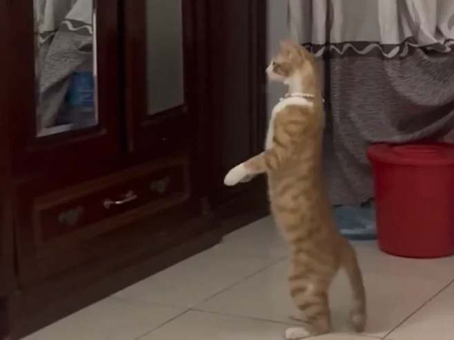 이 모습을 본 주인은 웃음을 참지 못했어요. “미친, 나보다 패션에 관심이 많네?”라며 눈엔 눈물이 맺히도록 웃었죠. 주인의 말에 가족과 친구들까지 모여들어 고양이의 퍼포먼스를 구경했어요.