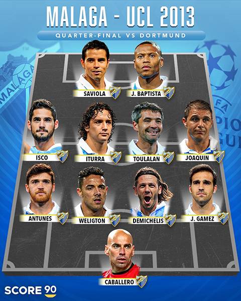 축구 콘텐츠 제작소 ‘score90’은 15일(한국시간) SNS를 통해 2012/13시즌 유럽축구연맹(UEFA) 챔피언스리그 8강 보루시아 도르트문트전 당시 말라가의 선발 라인업을 공개했다.