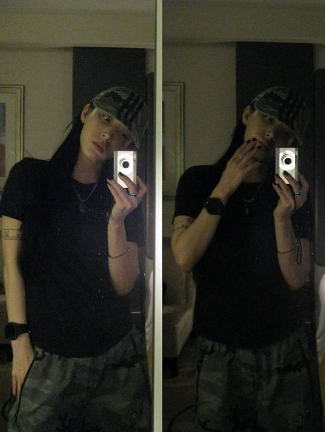소품 활용도 눈길을 끈다. 체인 스트랩이 강조된 빅사이즈 블랙 레더백은 실용성과 존재감을 동시에 챙겼으며, 모자 역시 카모 패턴으로 톤온톤 매치를 완성했다. 실버 액세서리로 포인트를 더해 힙한 분위기를 극대화했다. 댓글창에는 “언니 진짜 힙합 그 자체”, “이 언니 멋짐이 터진다” 등의 반응이 이어졌다.